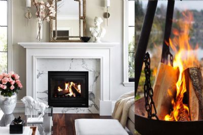 Şömine Beyaz Doğal limra taşı ve granitli olarak imalatı yapılarak 70 cm hazne ile montajı yapılmıştır.