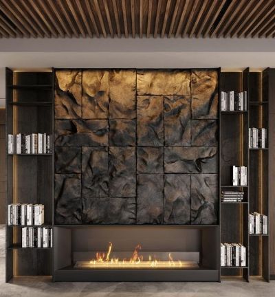 Şömine 120 cm borner ile sağ ve sol taraf biblolu olarak etanöl şömine modeli olarak monte edilmişitr